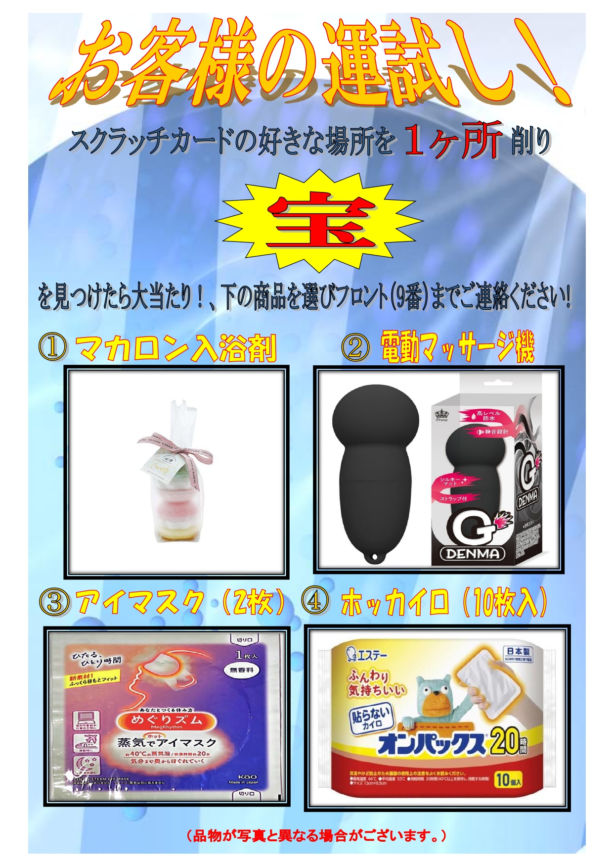 スクラッチカードの好きな場所を1ヶ所削り「宝」を見つけたら大当たり!